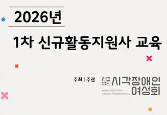 갤러리 Board 사업 및 행사 등의 사진을 공유하는 공간입니다. 게시물 검색 검색대상 제목 내용 제목+내용 검색어 필수 검색 153 [활동지원팀] 2026년 1차 신규활동지원사 교육 2026-03-30 조회 21 작성일 2026-03-30 152 발렌타인데이 크림치즈 르뱅쿠키 만들기 <발렌타인데이, 사랑을 굽는 시간> 2026-02-20 조회 198 작성일 2026-02-20 151 [활동지원팀] 2025 활동지원팀 송년회 2026-01-06 조회 270 작성일 2026-01-06 150 레인보우하모니 중창단 <함께 그리는 소리의 풍경, 레인보우하모니중창단> 외부공연 2025-12-30 조회 173 작성일 2025-12-30 149 2025년 시각장애인여성회 정기발표회 2025-12-16 조회 195 작성일 2025-12-16 148 레인보우하모니 중창단 <함께 그리는 소리의 풍경, 레인보우하모니중창단> 하반기 연습곡 촬영 2025-12-09 조회 177 작성일 2025-12-09 147 [활동지원팀]2025년 활동지원사 하반기 보수교육 2025-12-02 조회 200 작성일 2025-12-02 146 2025년 시각장애인여성회 '수중의 힘' 수영스쿨 & 아쿠아로빅 스쿨 종강 안내 2025-12-02 조회 200 작성일 2025-12-02 145 [활동지원팀]2025년 활동지원팀 외부나들이 ''사과따기 체험과 산정호수 길 걷기'' 2025-10-30 조회 379 작성일 2025-10-30 144 [활동지원팀]2025년 3차 활동지원사 신규교육 2025-10-28 조회 309 작성일 2025-10-28 143 [소식]2025년 생활체육교실 및 동호회 지원사업 - 중구여성시각장애인 벨리교실 2025-10-16 조회 315 작성일 2025-10-16 142 [활동지원팀]2025년 2차 활동지원사 신규교육 2025-09-05 조회 689 작성일 2025-09-05 141 레인보우하모니 중창단 <함께 그리는 소리의 풍경, 레인보우하모니중창단> 상반기 연습곡 촬영 2025-07-28 조회 529 작성일 2025-07-28 140 [활동지원팀] 2025년 핸드드립교육 '향기로운 일상, 나만의 커피를 내리다' 2025-07-15 조회 568 작성일 2025-07-15 139 [소식] 2025년 장애예술 활성화 지원사업 <함께 그리는 소리의 풍경, 레인보우하모니중창단> 2025-06-10 조회 648 작성일 2025-06-10